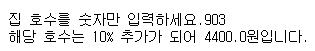 그리고 사용자로부터 집 호수를 입력받습니다.