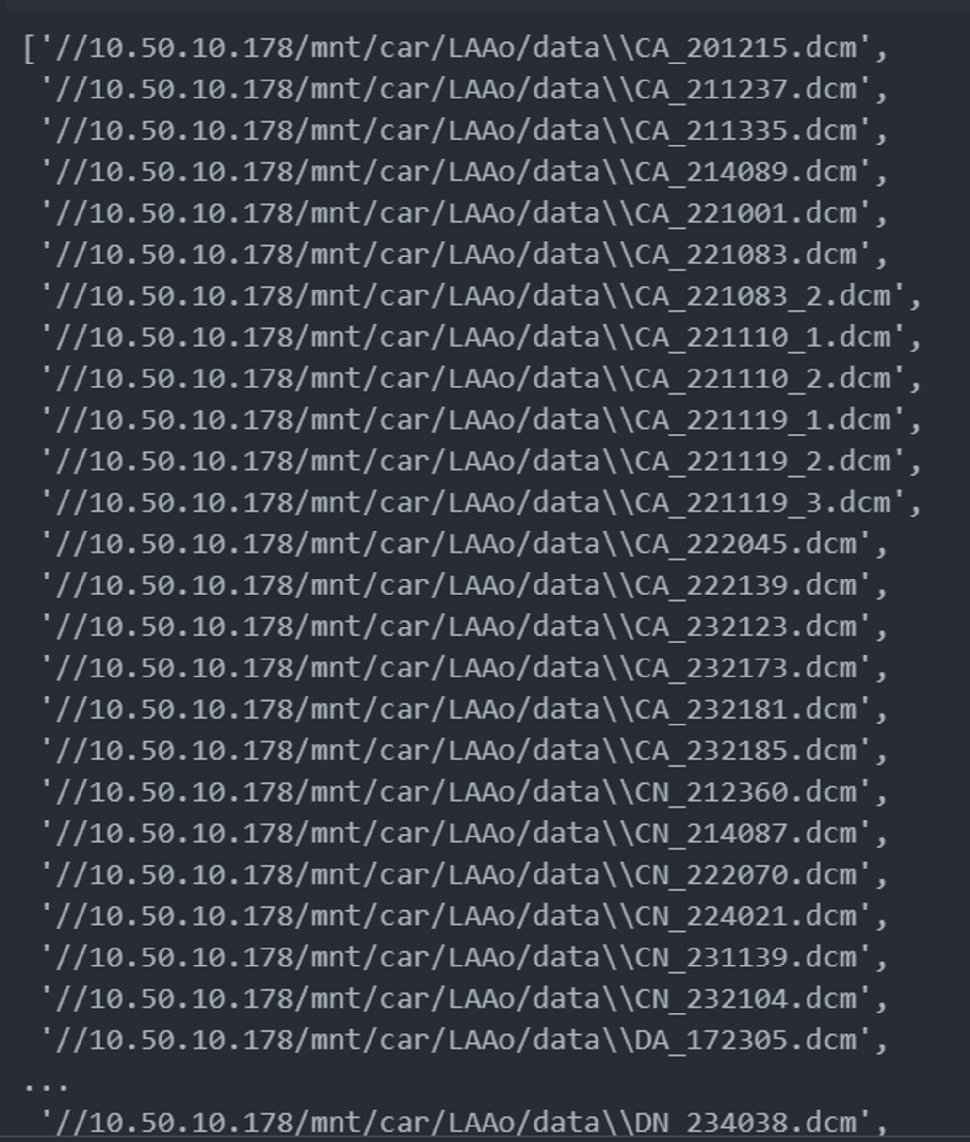 #[i for i in dicomlist] -> i= '//10.50.10.178/mnt/car/LAAo/data\\CA_201215.dcm', .....