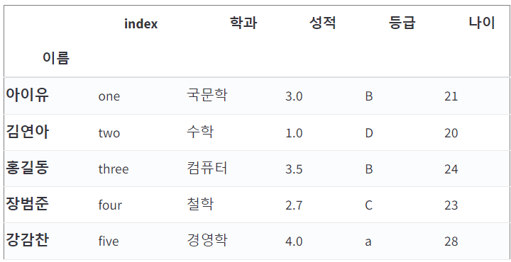 #df.reset_index(inplace=True) # inplace=True라는 인수값을 주면 데이터프레임 원본에 바로 적용 됨